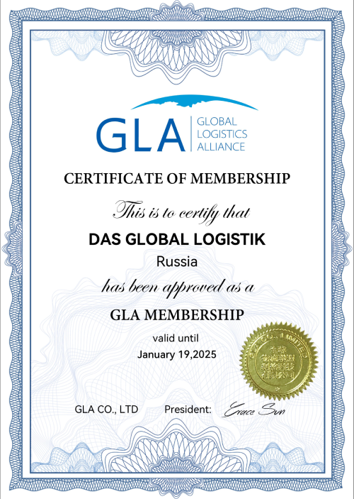 • Certificate confirming membership in the GLA Family (Project Logistics Alliance) for project cargo for 2023-2025