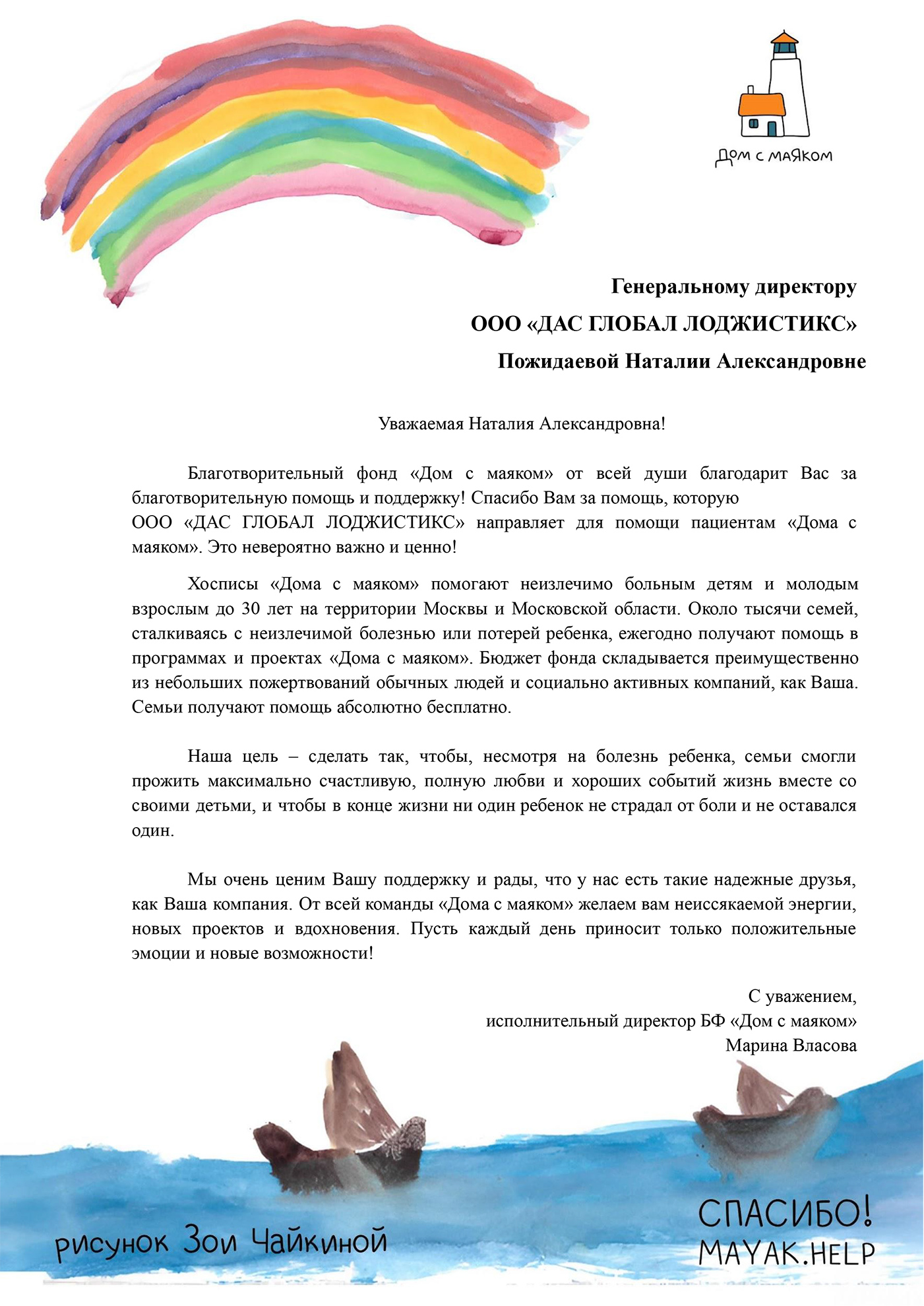 DAS GLOBAL LOGISTIK has provided financial support to the Lighthouse Home Charity Foundation, an organization that has been offering comprehensive assistance since 2018 to terminally ill children and young adults under the age of 30 in Moscow and the Moscow Region. The Foundation is a trusted partner of the Moscow Children's Hospice, the Moscow Oblast Children's Hospice, and the Young Adult Hospice, delivering targeted support to its beneficiaries and their families.
